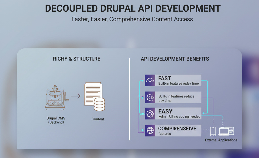 Using the Decoupled approach, which is another method, the API development process that could take a long time can be facilitated and developed much faster with Drupal. The reasons why developers prefer this method, which is used to access content created with Drupal from external applications, can be listed as follows:;
