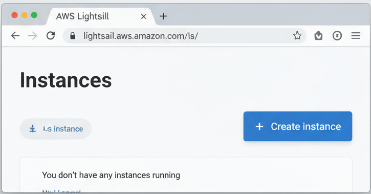 To use AWS Lightsail, you'll need an Amazon account. Once logged in, click on the "Create instance" button on the screen to proceed with server creation.