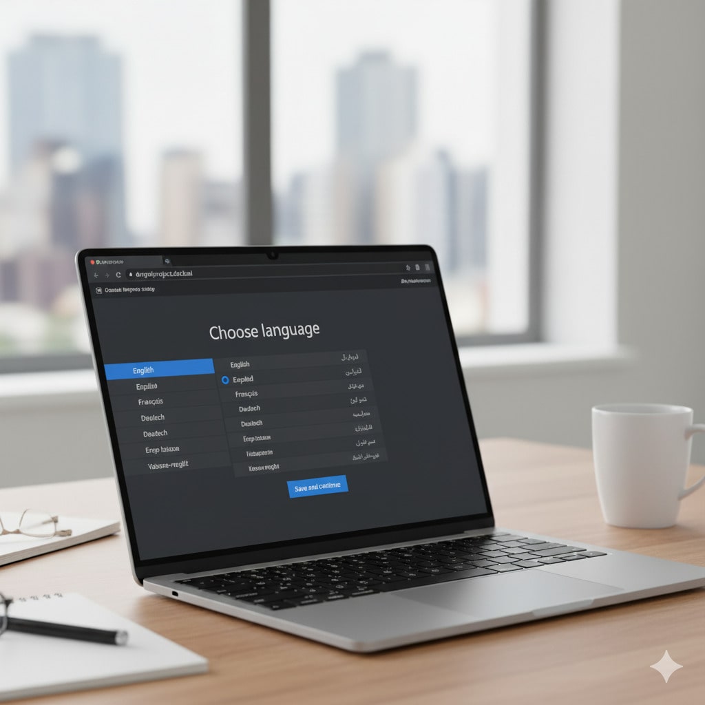 By typing the address of our project in our browser, we come to the first setup screen. We set the language.