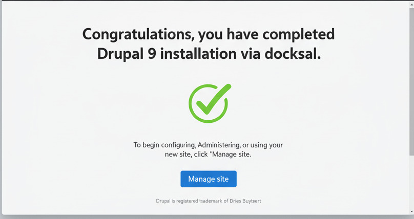 Congratulations, you have completed Drupal 9 installation via docksal.